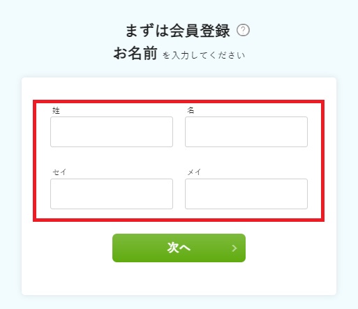 「会員登録する(無料)」をクリックすると名前の入力画面に切り替わる。